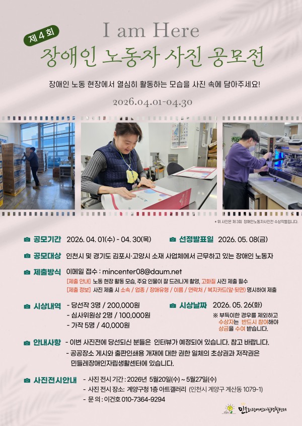 - 공 모 명: I AM HERE 장애인 노동자 사진전